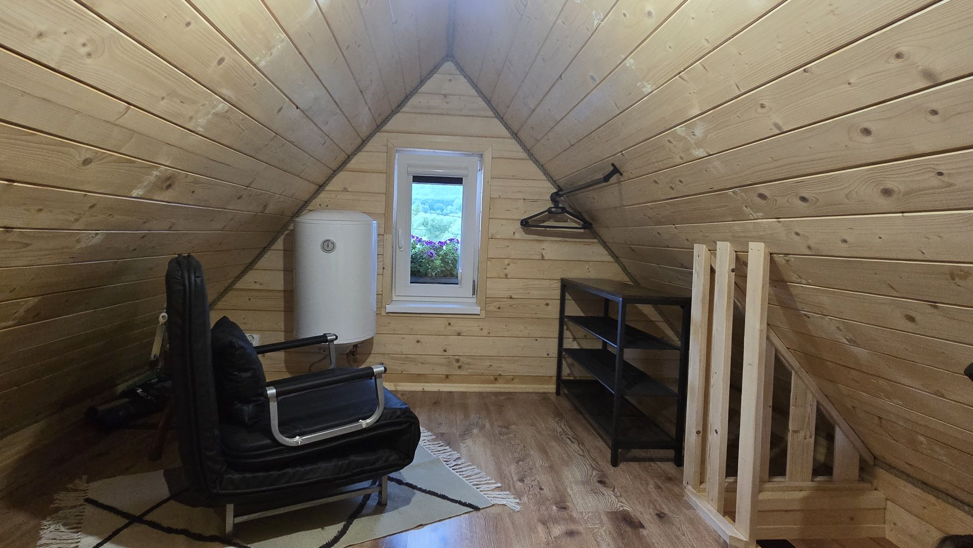- Druga na poddaszu, wyposażona w fotel do podziwiania widoków lub dla dodatkowego gościa