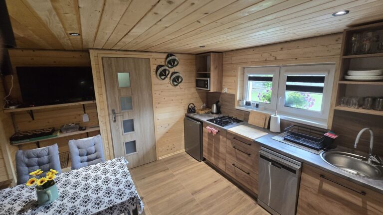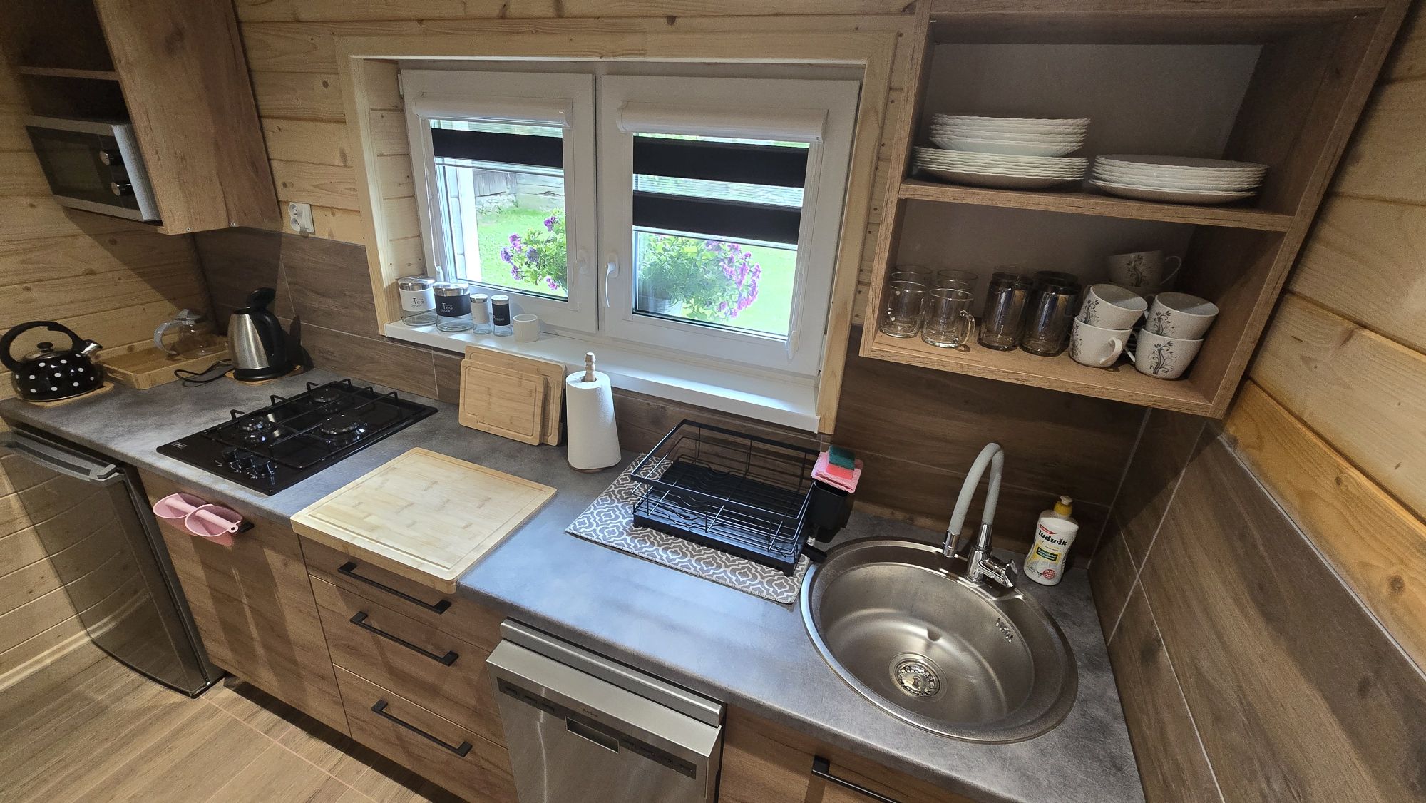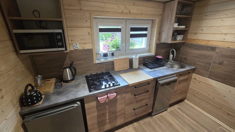 Kuchnia: w pełni wyposażona – zmywarka, mikrofala, czajnik elektryczny, lodówka, kuchenka gazowa